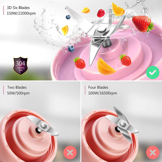 Portable Blender, Personal Size Blender for Shakes and Smoothies, 4000Mah Rechargeable Mini Travel Blender with 3D Six Blades, 13.5Oz Fruit Mixer Cup for Home, Sports, Outdoor (Pink)